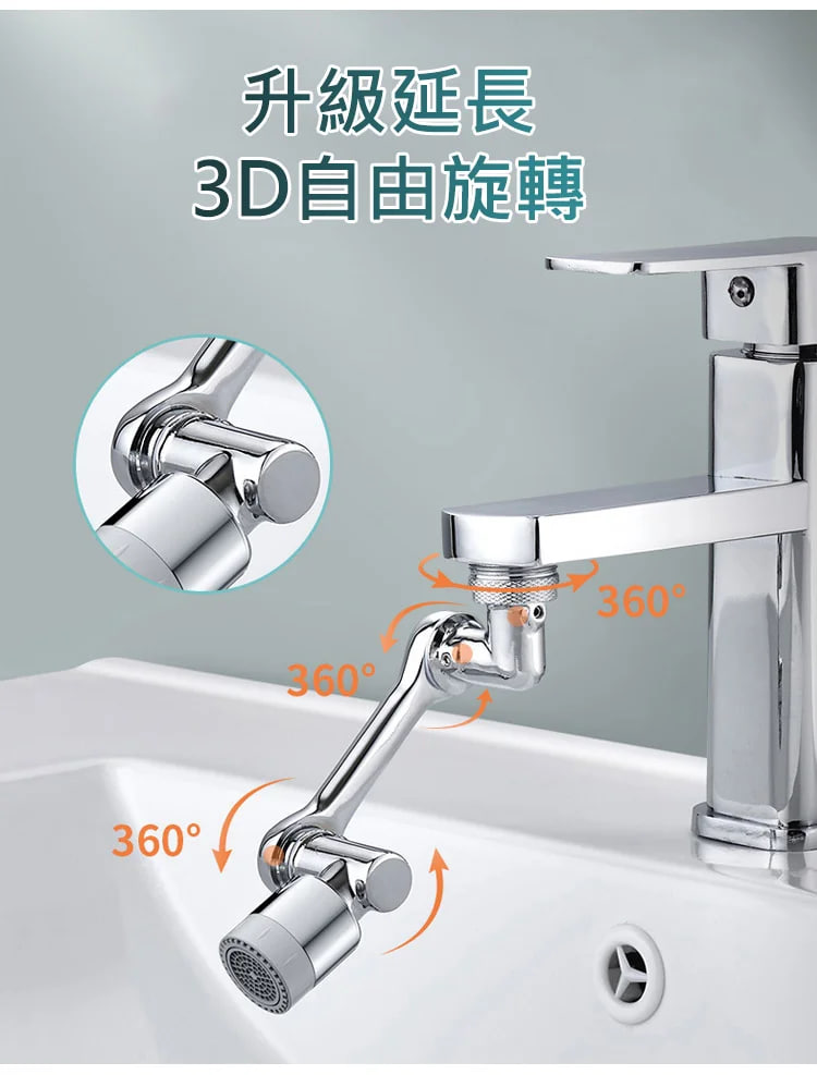 7分鐘前機械臂萬向水龍頭延長器 1080°自由旋轉,隨意伸縮 可直接漱口、沖臉、洗頭、清潔水池!防鏽防腐蝕,方便耐用! - 破盤嗨購【買三送三】6入組 僅需 -NT$1150