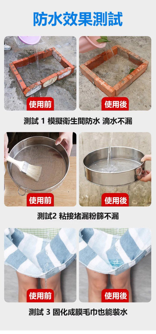 2分鐘前【廠家限時鉅惠】【一塗止漏】透明防水膠塗料300cc一桶可刷1-2坪, 外墻、陽臺、屋頂、瓷磚、屋内都可以通用 - 【限時下殺】買三送二 5入組 NT$1198