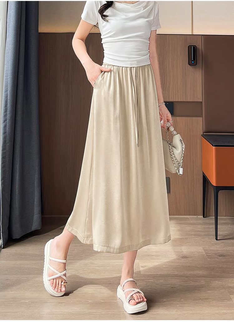 半小時前【醋酸緞面半身裙】夏季薄款流光半身裙百搭冰絲高腰顯瘦垂感開叉中長裙子 - 【均價599】2入組-NT$1199